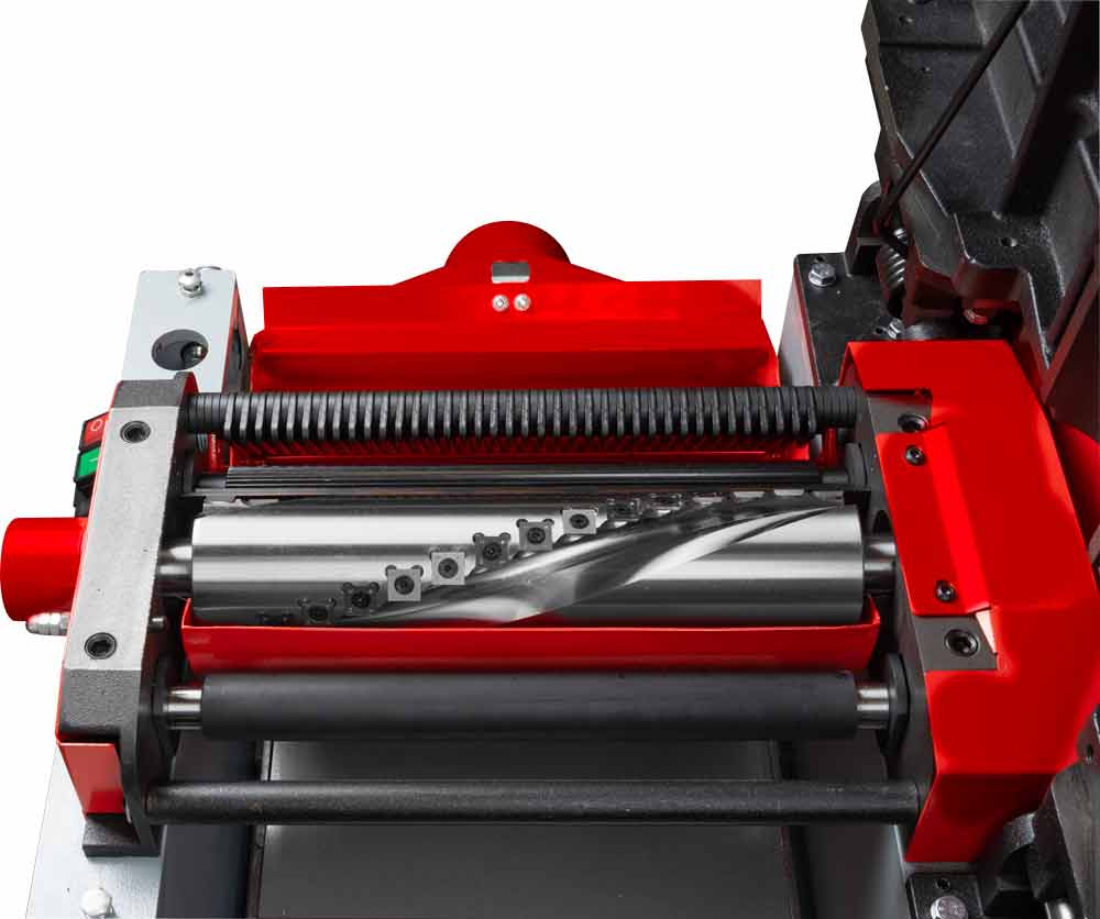 - präzisionsgelagerte Spiral-Messerhobelwelle mit Wendeschneidplatten (2 Rillen)