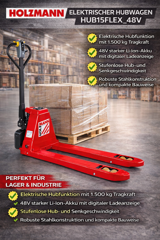 Weiterführende Links zu "Holzmann voll elektr. Hubwagen HUB15FLEX_48V - Sonderaktion"
